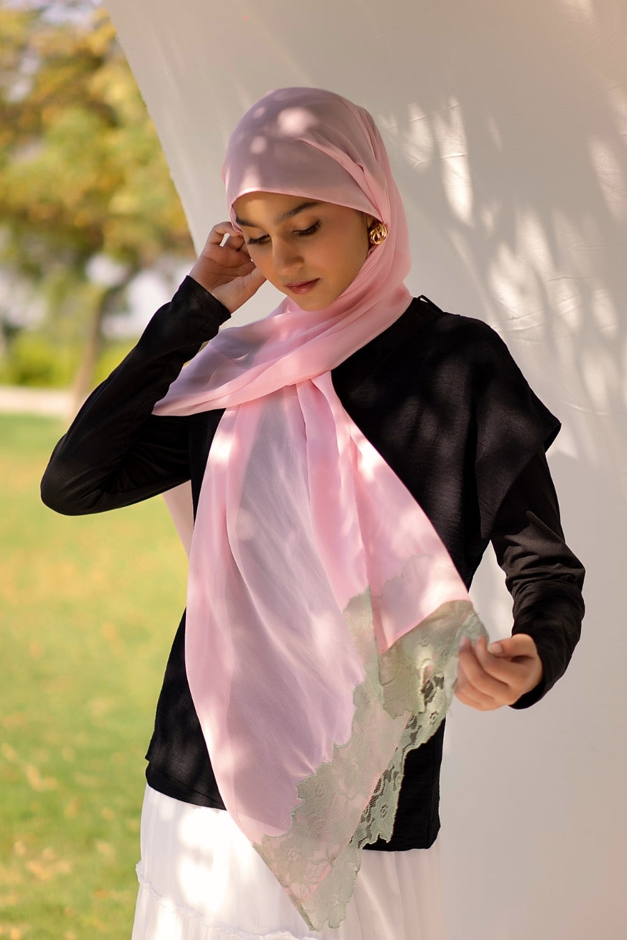 Our Lace Border Chiffon Hijabs are crafted from premium sheer chiffon, finished with intricate lace detailing along the edges. The soft, see-through texture creates a graceful and elegant drape, making it a beautiful choice for formal styling. Light, breathable, and effortlessly feminine, this collection is designed to elevate your summer wardrobe with a refined, sophisticated touch.