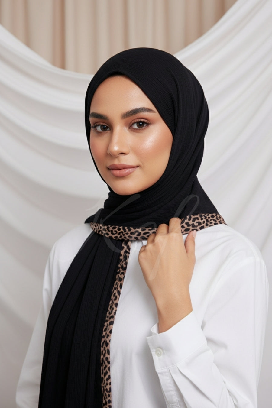 A timeless fusion of texture and print — our Pleated Crinkle Hijab Collection is designed to elevate your everyday look. Crafted with soft crinkle pleats that add depth and fluidity, each piece is finished with bold leopard borders for a statement touch. Lightweight, breathable, and effortlessly chic, these hijabs offer graceful drape and versatile styling for both casual wear and special occasions.